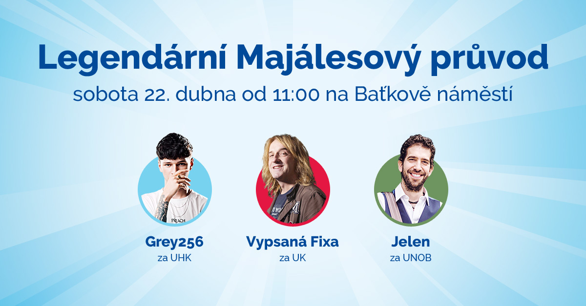 Start průvodu je v 10:30 na Masarykově náměstí, poté vyplouváme centrem Hradce směr Majáles open-air u Pileťáku!